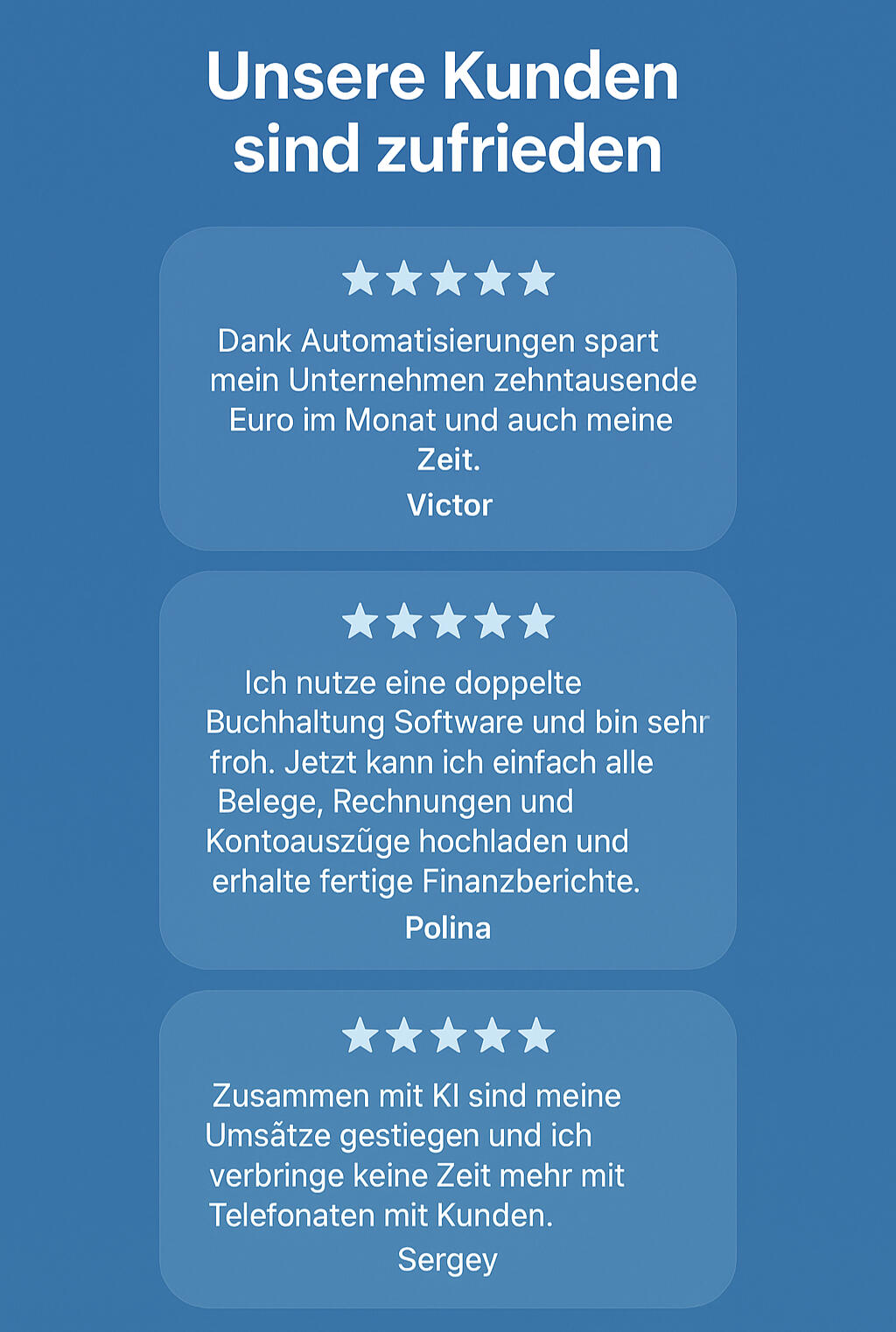 Ich automatisiere Geschäftsprozesse mit KI und n8n – von Customer Support und Sales bis zur doppelten Buchhaltung. Mein Fokus: klare Prozesse, messbare Ergebnisse und schnelle Umsetzung statt leerer Versprechen.